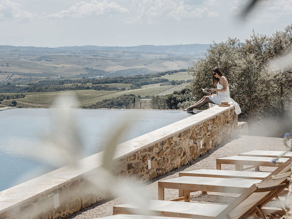 With its elegant design and infinity over the valley, it offers our guests an experience of pure well-being immersed in a postcard setting. While the water merges with the horizon, you can let yourself be lulled by the tranquility of the Tuscan countryside, admiring the rolling hills, vineyards and charming medieval villages that make this place unique in the world.
